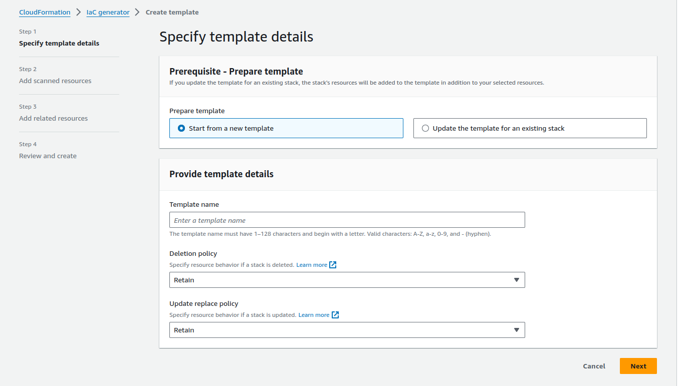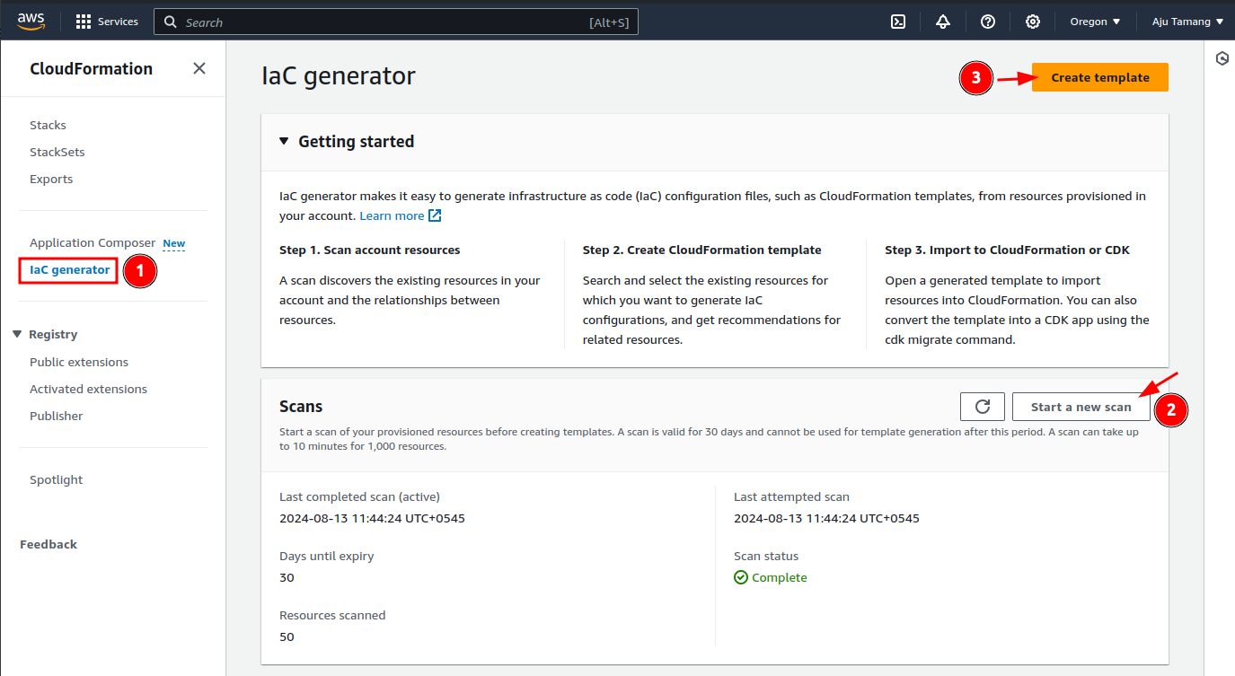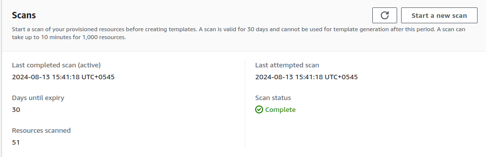 IaC generator scans an AWS account. Here, cloudformation leverage the resource type schema to find the relationship between resources. It usually takes few minutes to scan.