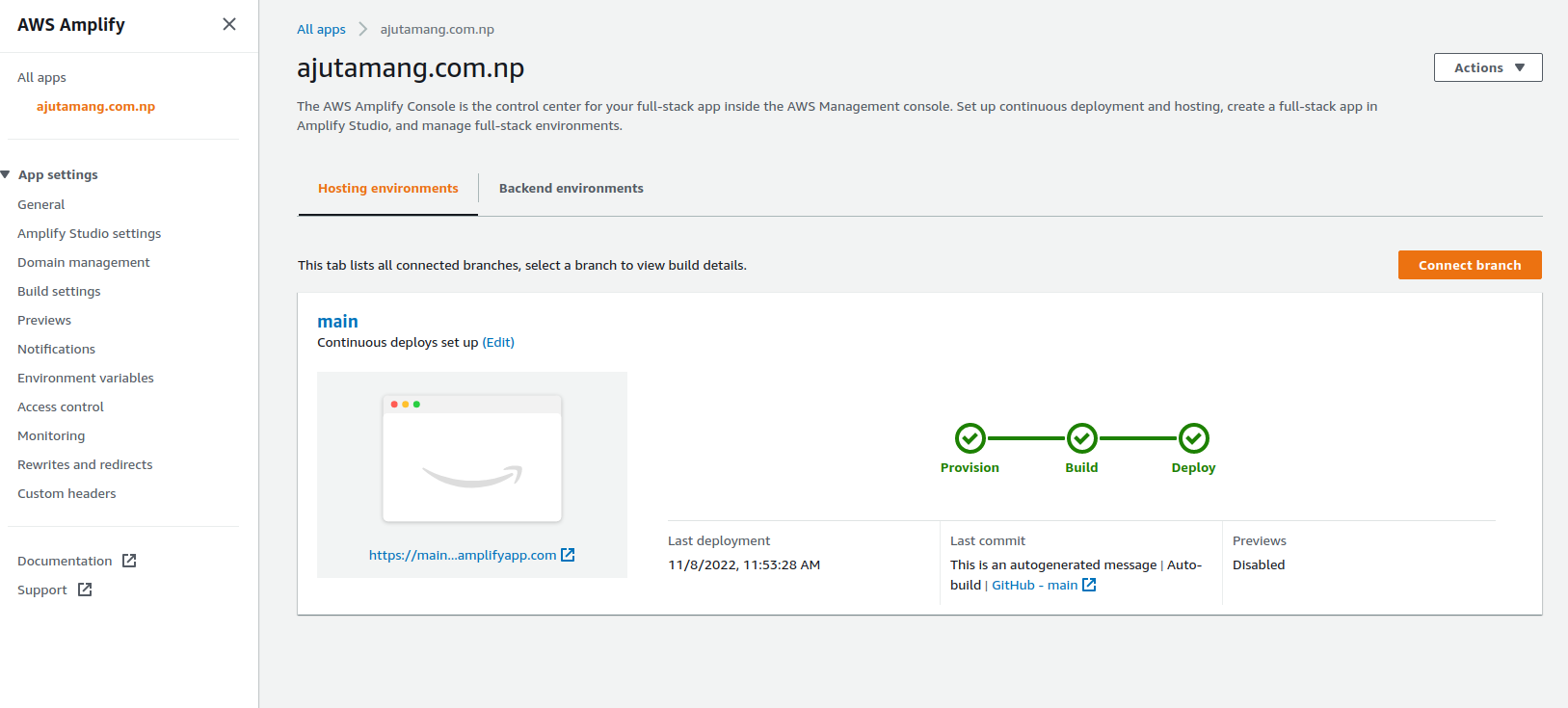 For SEO purposes, Google will lower your website ranking if you don’t set up the SSL. Attaching an SSL certificate is almost an a-must-to-do for the deployment. AWS Amplify Console helps you attach a custom domain to your website with a Free SSL certificate.