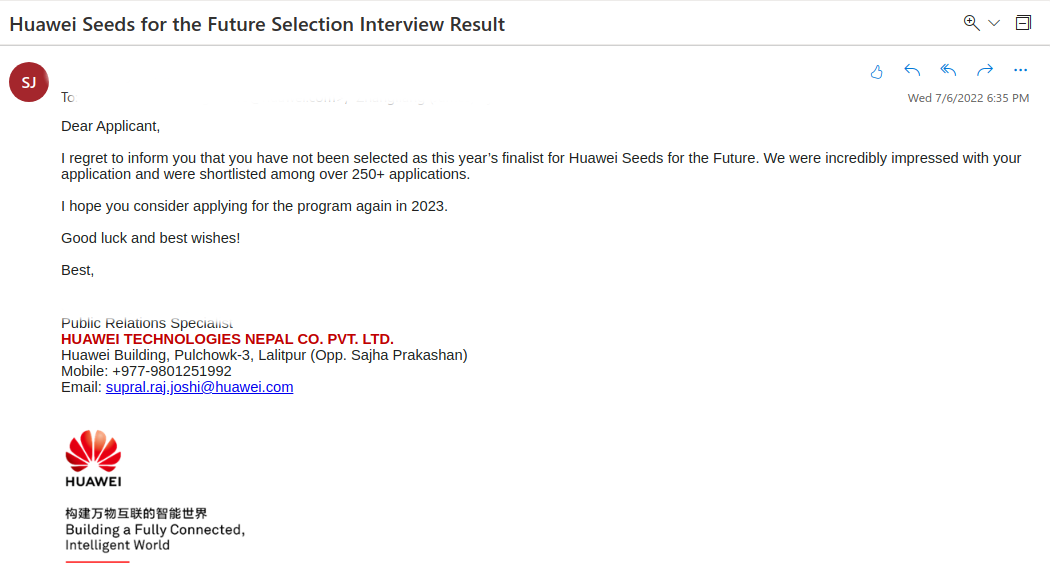 Yes, my application had rejected during the selection process for this program. Huawei Nepal has a systematic selection process where you must have some requirements.